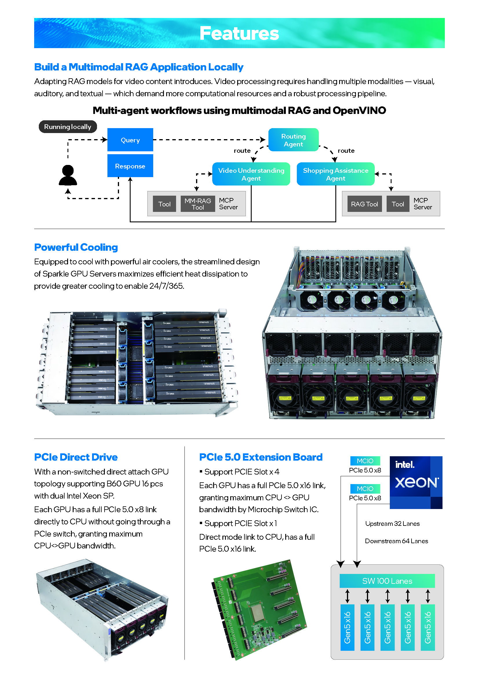 SPARKLE, en colaboración con Intel, presenta una robusta gama de soluciones de hardware diseñadas específicamente para satisfacer las exigentes demandas de las cargas de trabajo de IA, desde la inferencia local hasta las aplicaciones empresariales a gran escala. La propuesta se centra en ofrecer sistemas multi-GPU con una VRAM masiva, posicionándose como una alternativa costo-eficiente para tareas como el fine-tuning de modelos de lenguaje (LLMs) y la creación de aplicaciones de RAG (Generación Aumentada por Recuperación) multimodales.