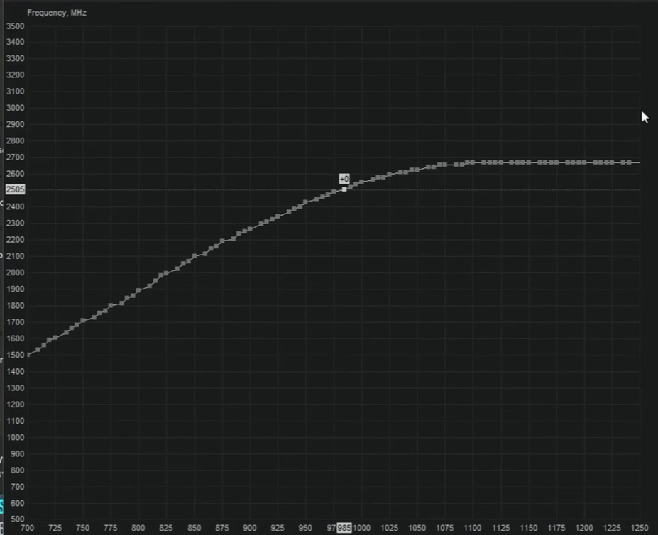Cada chip de silicio opera siguiendo una curva de voltaje/frecuencia predeterminada por el fabricante. Por ejemplo: