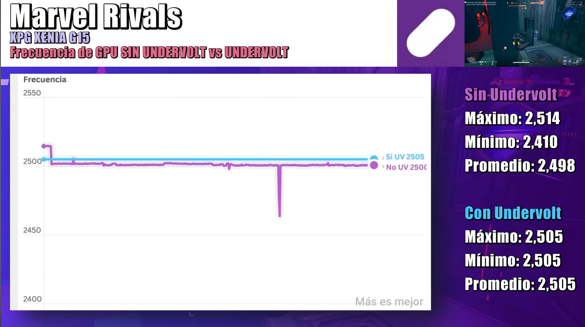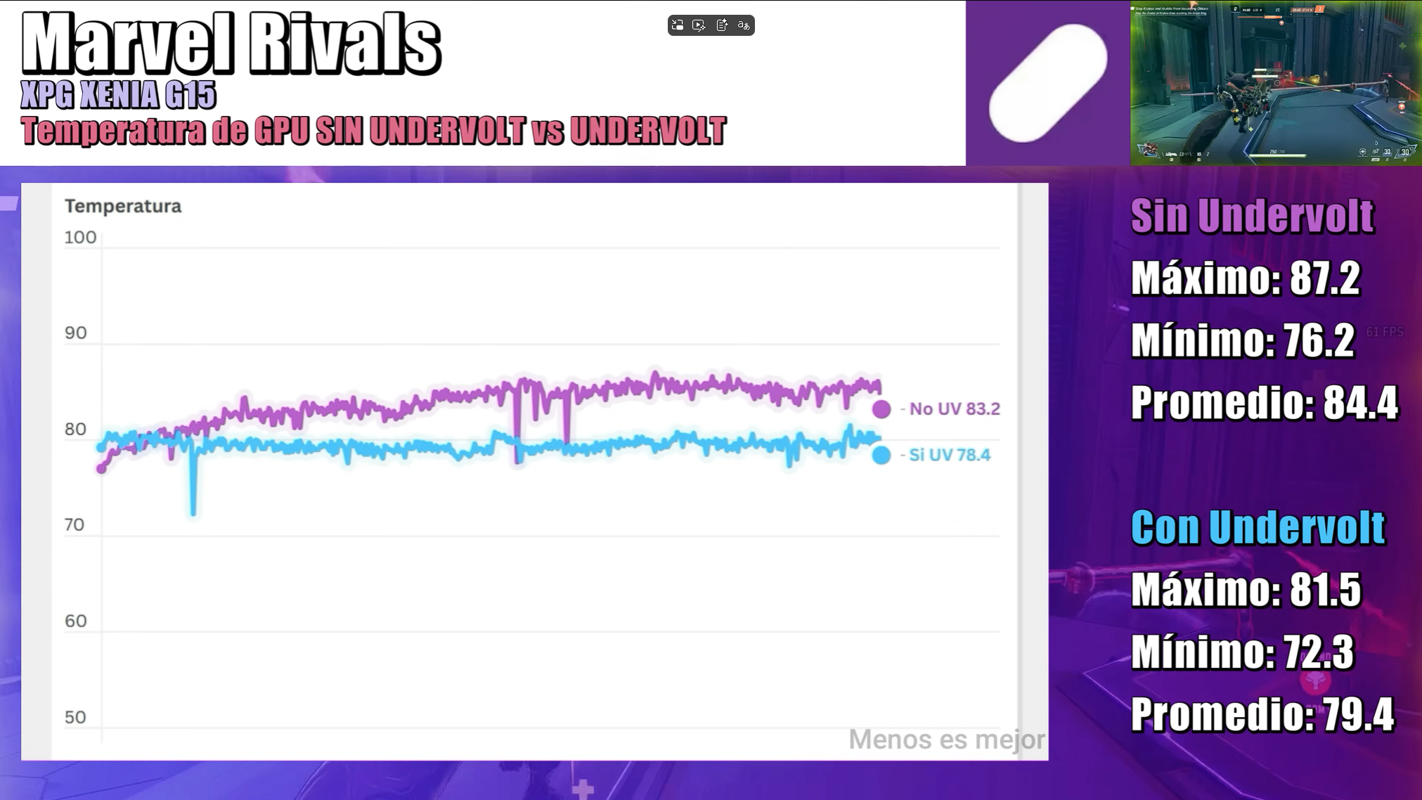 Aquí es donde el undervolt brilla. Al reducir el voltaje, bajas la producción de calor. Si tu gráfica ahora opera 10 o 15 grados más fría, es posible que nunca llegue a alcanzar el límite de temperatura del thermal throttling.